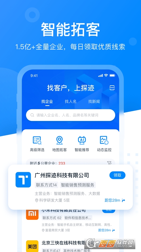 探迹app企业查询可以用来提供各种企业数据服务,它也可以帮你查找各种企业信息,探迹,专注于帮您的企业全面提升销售效率和业绩,快来鳄斗163手游网吧。