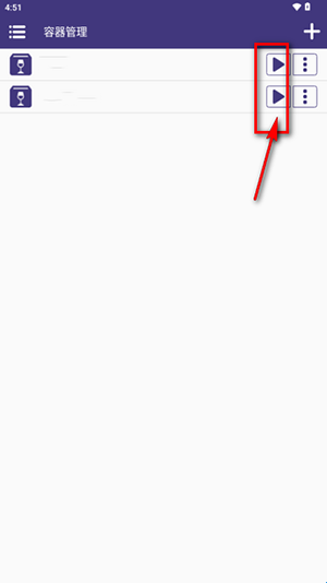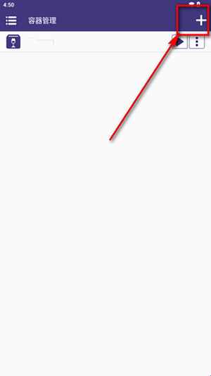 3、进入后点右上角的+号添加容器。