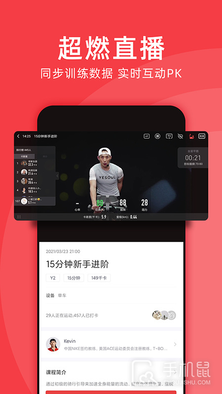 2、Yesoul帮您塑造完美身材,保持优质的生活状态。 —课程直播 每日5~8节课,在家中身临其境的感受教练的专业指导。直播过程中实时排名,与各地骑友同场竞技。演唱会级别的灯光音乐。全心投入,仿佛置身于一场时尚party。 —课程点播 海量往期课程免费拥