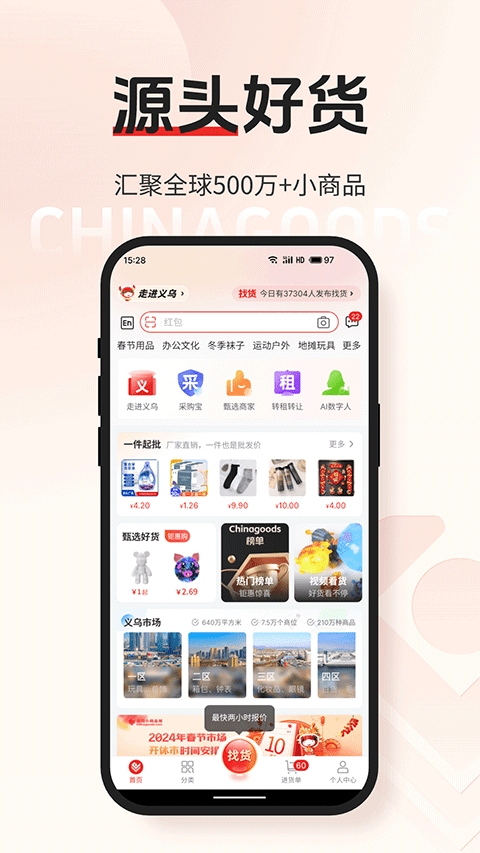 小商品城是一款方便又实用的购物软件,里面有来自世界各地的小商品,从日常用品到特色工艺品,要啥有啥,有时候会有掌柜直播,让你可以边看直播边下单买东西;还有时令爆款推荐,让你不错过任何抢购的好机会。