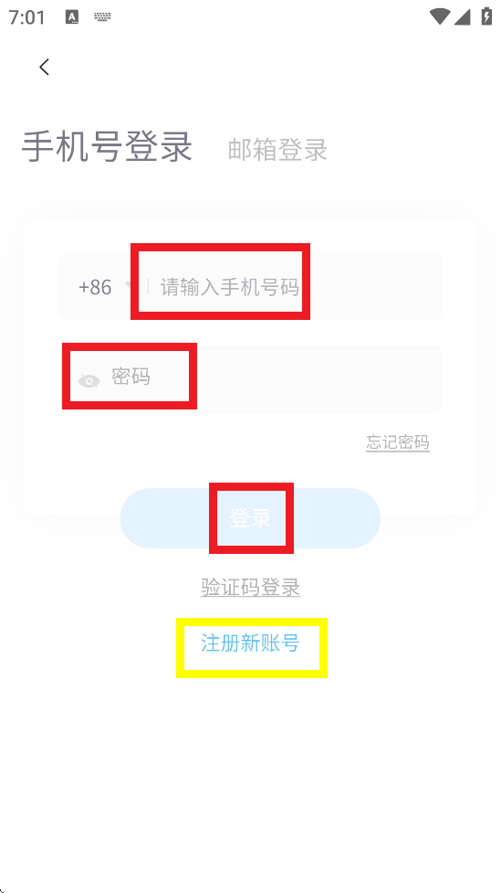 2、输入手机号和密码进行登录,新用户应该先注册账号。