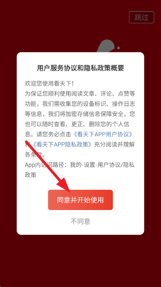 1、打开软件,点击“同意并开始使用”。