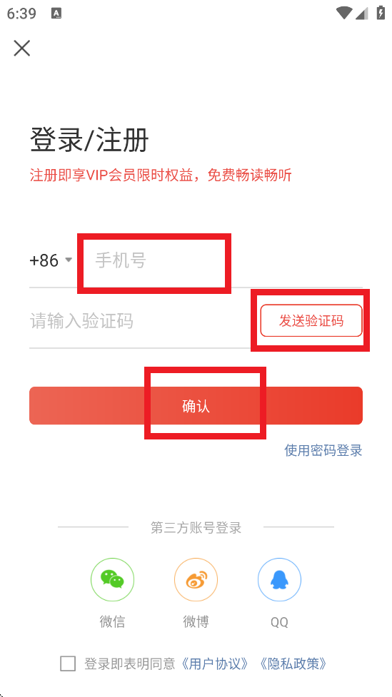 2、输入手机号获取验证码进行登录。