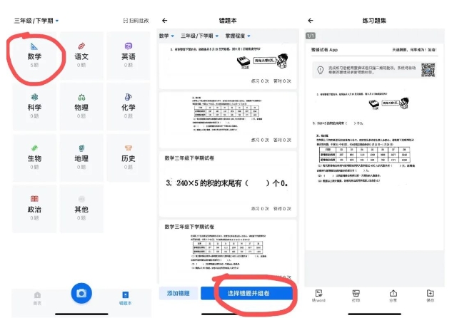 6、在错题本选择科目进行“错题组卷”
