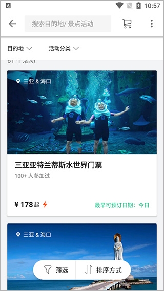 部分活动支持随时预订,即刻出票,还能享受免排队的麻烦。无论是在迪士尼乐园沉浸在童话世界,还是在海边冲浪乘风破浪,抑或是周末来一场说走就走的酒店度假,快速预订,马上向快乐出发!