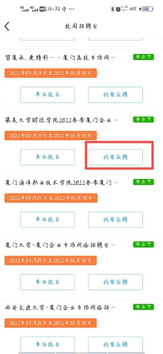 4、选择自己的学校或者是其他学校,点击我要应聘即可。