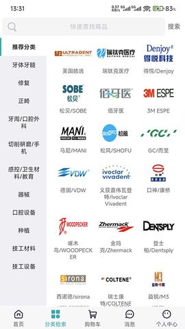 1、提供丰富的牙科设备和耗材,分类展示,方便用户快速查找选购。