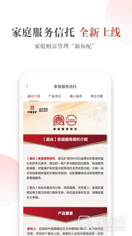 五矿信托是一款专业的财富管理应用,为用户提供安全、高效的金融服务,用户可以在应用中进行资产配置、信托投资等操作,实现财富增值和保值,五矿信托还提供最新的金融市场动态和专业投资建议,帮助用户把握投资机会,做出明智的财务决策。
