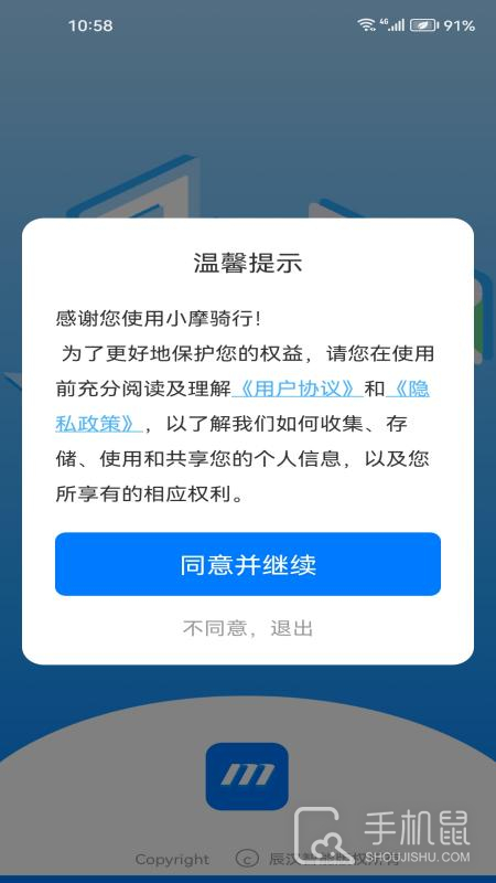 打开小摩骑行App,点击注册按钮,输入手机号码和短信验证码后,设置密码并填写个人信息即可成功注册。