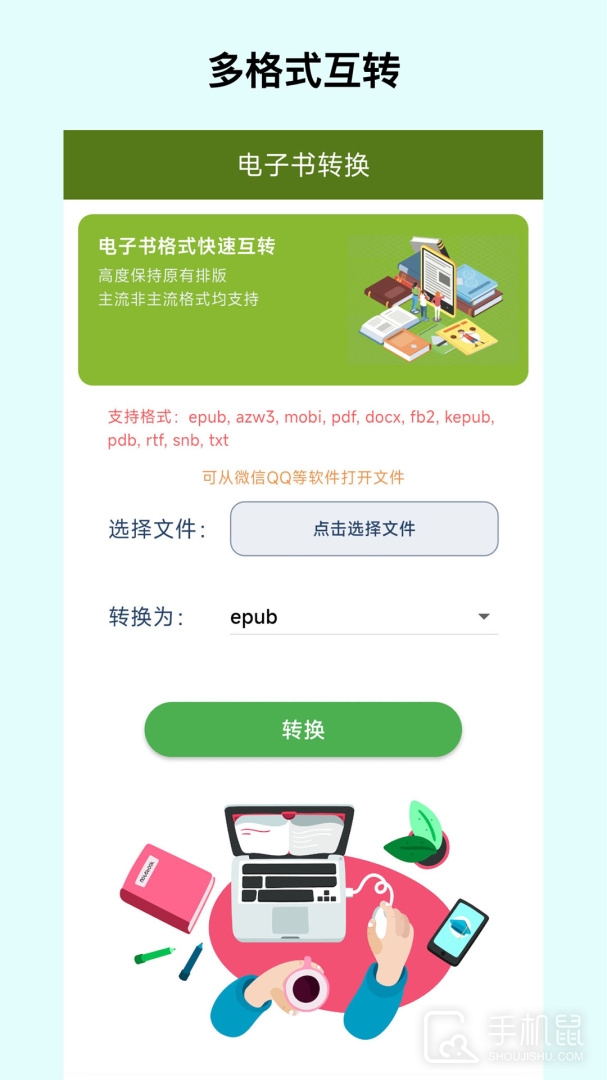 电子书转换器是一款专为阅读爱好者打造的实用工具,您喜欢的电子书格式是什么,这款app都能帮助您将其转换成其他常见格式,使您能够在不同设备上轻松阅读,无需复杂的操作,只需选择源文件和目标格式即可开始转换,电子书转换器还有多种定制化选项,例如调整字体、大小和页边距等,让您的阅读体验更加舒适,还支持批量转换,节省大量时间和精力,还等什么?赶快尝试一下电子书转换器,让阅读变得更加便捷和愉快!