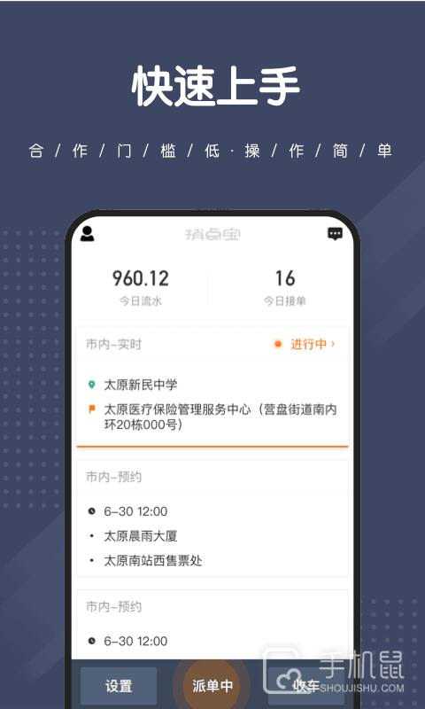 1、新入驻的司机无需专人指引则可以轻松上手接单,傻瓜式的操作非常简单;