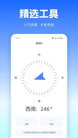 对需要的手机工具也可以便捷选择使用,进而可以使用指南针来识别当前的方向。