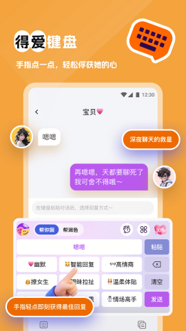 得爱键盘最新版是专门提供恋爱高情商聊天话术的工具,它能够帮助用户提高自己的情商,在恋爱过程中或者是与人交处时能够起到很大的作用,同时还可以复制对方话题来获得系统恢复,打造一高情商的人社,这样能够吸引更的异性关注,赶紧来试试吧。