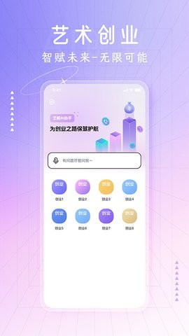 1、打开应用就可以让你一键实现艺术创业,轻松创业就业。