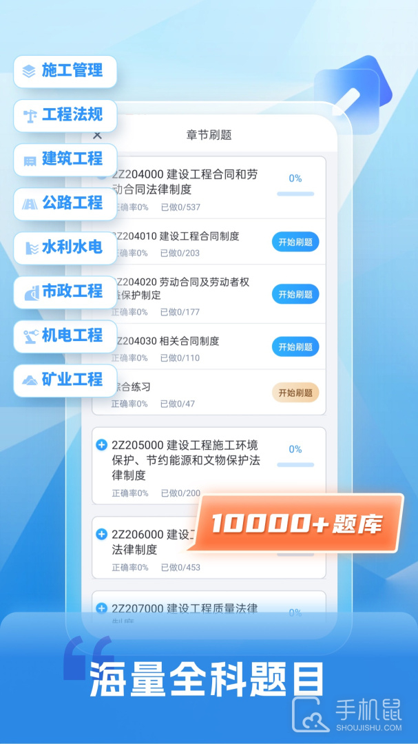 二级建造师题库自考王是一款专为准备参加二级建造师考试的用户设计的手机app,它提供大量题目和答案,涵盖了建造工程管理、工程经济、法规与标准等多个方面的知识点,帮助用户进行复习和测试巩固,它还提供模拟考试功能,让用户能够真实体验考试环境,提高应试能力。