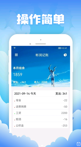 2,所有的账目数据都是非常完整的,用户可以简单的来浏览各种不同类型的账单数据,收入和支出都会非常清晰的呈现在软件上,让用户可以随时来修改和记录,合理理财安排自己的生活。