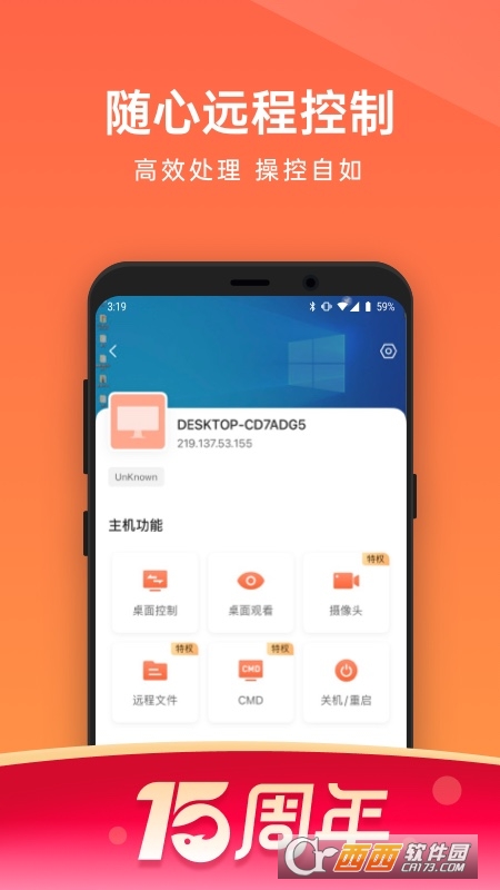 向日葵远程控制的主要功能包括:手机投屏,将手机屏幕投屏到电脑屏幕,游戏时,投屏到电脑桌面,邀好友共赏!远程桌面:手机远程访问电脑,实现远程桌面连接。远程控制手机,手机控制其他手机,实现远程调试,手机操作演示。远程摄像头监控,调用闲置安卓手机摄像头,实现远程监控。远程文件管理,实现手机、电脑等多设备间文件互传,分发。远程开关机,搭配向日葵开机棒,实现电脑远程开关机。