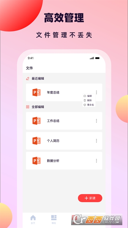 苹果手机ppt制作是一款专业的PPT文档制作办公软件,使用方法简单,拥有的模板素材丰富,可以随时选择套用,支持线上编辑,实时记录编辑内容,适合多场景使用,根据不同方面需求来辅助制作文档,需要伙伴,鳄斗163手游网即可苹果手机安装。