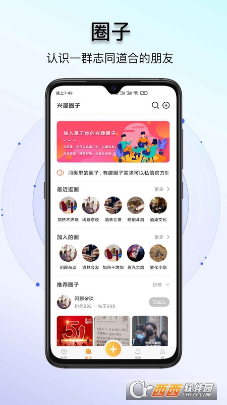 宴刻app是由深圳市生而非凡科技有限公司打造的一款趣味十足的兴趣交友类软件。软件设置了烟酒、商品测评、兴趣爱好等多种圈子,在这里,你能够遇到与自己有相同兴趣爱好的朋友。在线发表自己的看法和见解,分享自己的生活。打造绿色健康的社交平台。快来下载宴刻app感受一下吧。