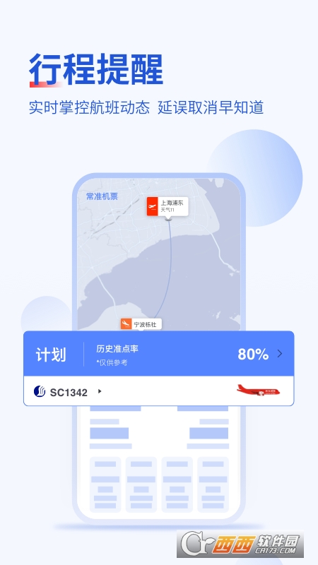 按航班号或起降地搜索,个性化定制你想关注的航班,随时了解航班行程