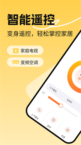 2、万能空调遥控器:旋转一步调节温度,制冷制热一目了然,室外天气实时显示。