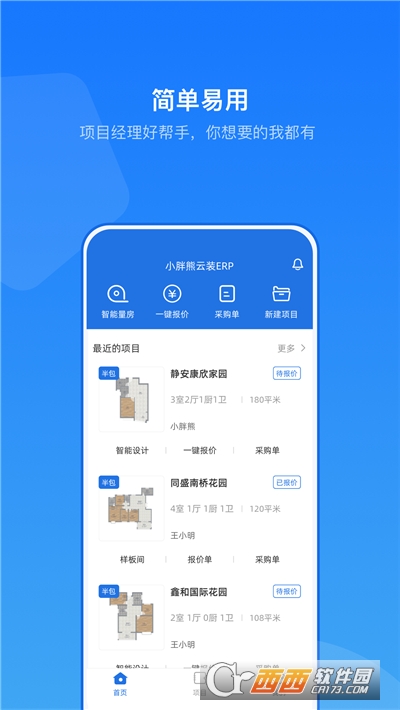 小胖熊云装ERP是一款装修行业移动办公服务软件,适合多人群使用,目前支持设计师和工长使用,可以为你快速出图报价,还可以采购不同工地项目所需的材料,拥有的工地项目多,用户自由筛选接单,随时进行项目管理编辑,需要伙伴,鳄斗163手游网即可使用。
