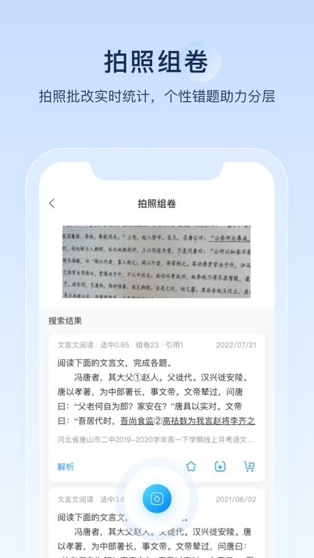 组卷专为中小学老师打造,用户可以根据需要选择不同的章节或知识点来挑选题目,还可以通过难度、题型等多种筛选条件来定制试卷,支持拍照组卷功能,只需用手机拍摄纸质试题,就可以快速将题目加入到你的在线题库中,非常方便快捷。还提供了作业管理和错题本功能,能够帮助老师轻松布置作业,并自动收集学生的答题情况。