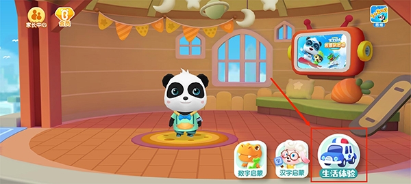1、打开宝宝巴士奇妙屋,在游戏首页右下方找到【生活体验】,点击进入。