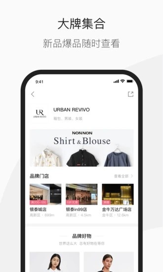 4、专注于服饰和美妆领域,聚合品牌线下实体门店,根据LBS定位系统,为用户呈现全城优惠信息与附近购物优选指南。