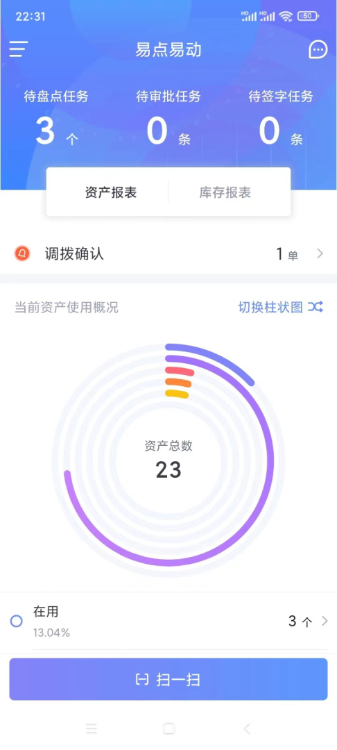 4、应用支持使用柱状图查看资产的使用状态,让使用状态更加清晰明了
