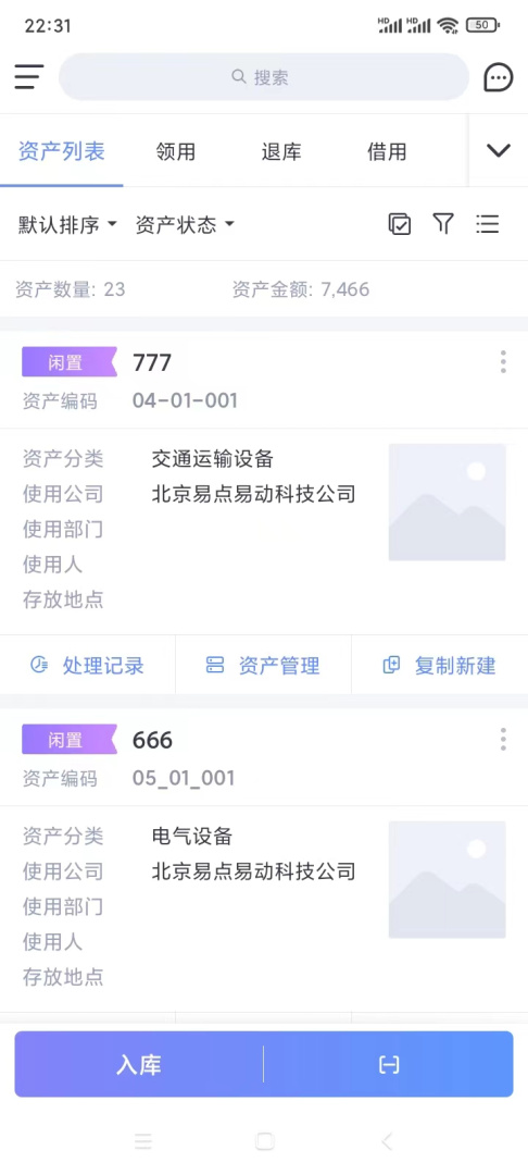 3、可以记录下每一次的资产处理记录,方便后来人进行使用记录查询