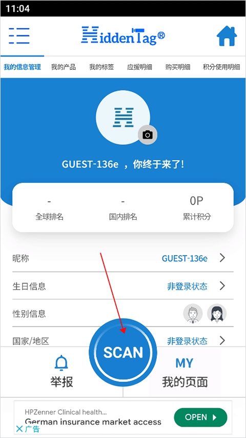 1、打开HiddenTag官方版,进入到用户界面,点击页面上方的“SCAN”按钮;