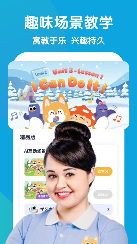 流利说-少儿英语是一款专为孩子设计的互动学习应用程序,旨在帮助孩子轻松、有趣地学习英语,通过丰富多彩的游戏、动画和故事,结合生动有趣的角色与情景,激发孩子学习英语的兴趣,并帮助他们快速掌握基本词汇、语法和听力,这款app还有测验和挑战,让孩子能够在练习中不断提升自己的英语水平,流利说-少儿英语不仅可以帮助孩子建立起扎实的英语基础,更可以促进他们的逻辑思维、记忆力和口语表达能力的提高,是家长们值得信赖的一款优质学习工具。