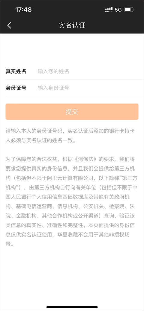 5、输入真实身份信息,点击“提交”按钮;