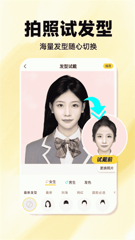 这款发型百变相机提供了丰富多样的发型编辑功能,包括长发、短发、卷发、直发等各种发型选择。还可以调整发色、添加刘海、加入头饰等,让用户轻松尝试不同风格的发型。