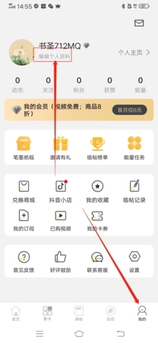 1、进入APP后,首先点击右上角“我的”,再点击昵称下方的“编辑个人资料”;