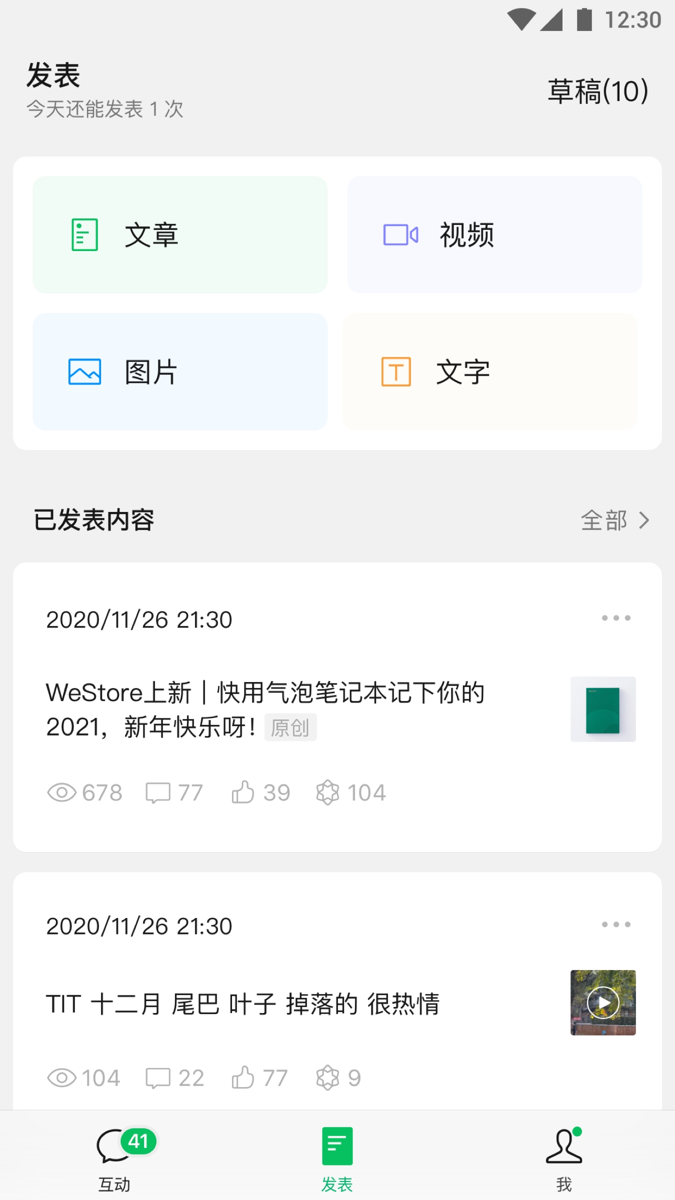 没有及时完成或发表的文章会被保存在草稿箱,以便稍后继续编辑和发表;