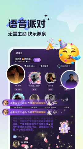 2、语音派对,无需主动,快乐源泉。