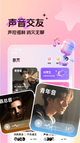 2、声音试听:在声控广场试听不同类型的声音,找到最合适的聊天对象。