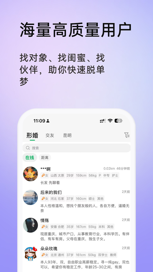 3、形婚吧打造了更加安全可靠的社交平台,帮助大家更好地找到形婚对象