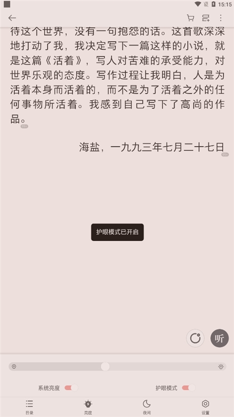 蓝光过滤、听书功能、有声频道,看小说不疲劳