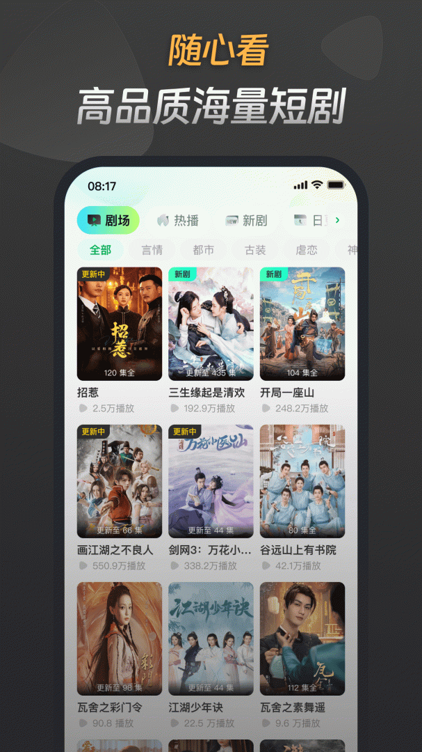 星芽免费短剧采用了先进的视频压缩技术,保证了播放的流畅性。也支持多种分辨率选择,用户可以根据自身网络状况选择最适合的分辨率。