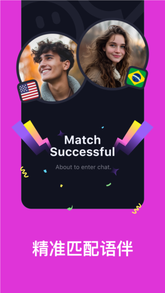 •智能匹配:根据语言水平、目标和兴趣,精准匹配合适的语言伙伴,个性化学习体验。