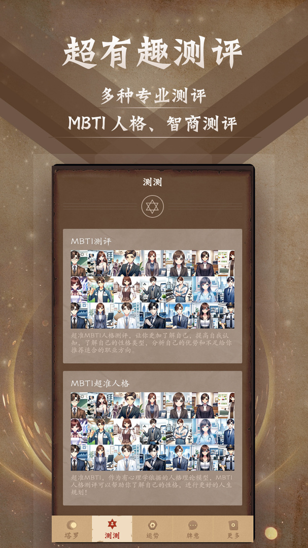 塔罗牌是一款提供塔罗牌占卜服务的手机应用,用户可以通过选择牌组进行占卜,获取生活、爱情、职业等方面的指引和建议,帮助用户解决疑惑和困惑。
