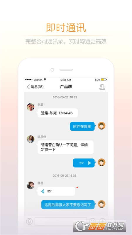 企业员工加入企业后,即可随时随地移动聊天、即时通讯、数据传输,实现移动化办公。