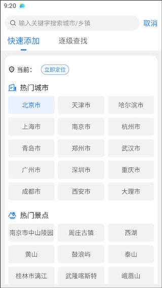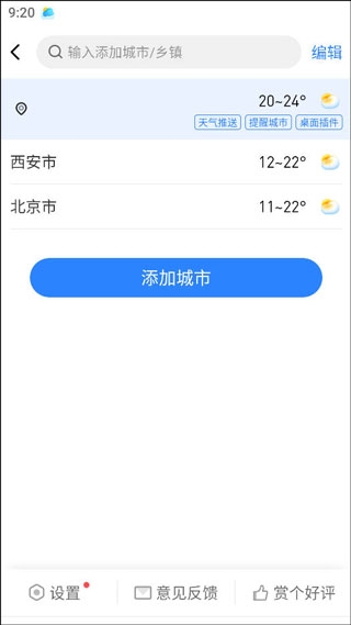 2、然后选择【添加城市】