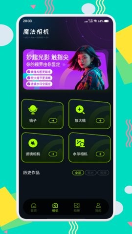 2、其中有滤镜相机、水印相机两种类型的相机拍照功能用户可任选使用;