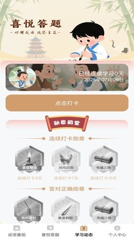 3、趣味答题挑战:设计了多种答题挑战模式,用户可以通过闯关答题的方式学习成语,提升学习积极性。