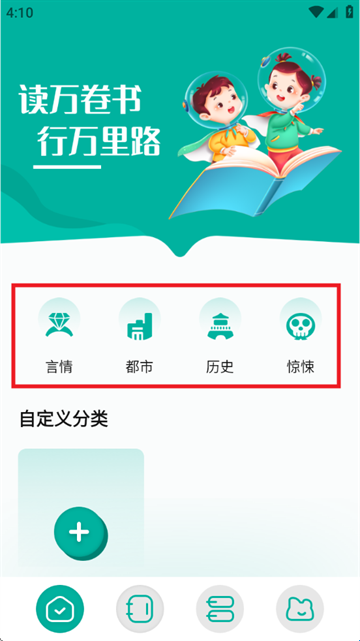 1、打开阅读亭app,然后选择你想导入书籍的类别;