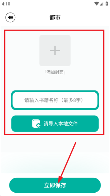 4、最后输入书籍名称、封面并导入文件,点击立即保存即可。